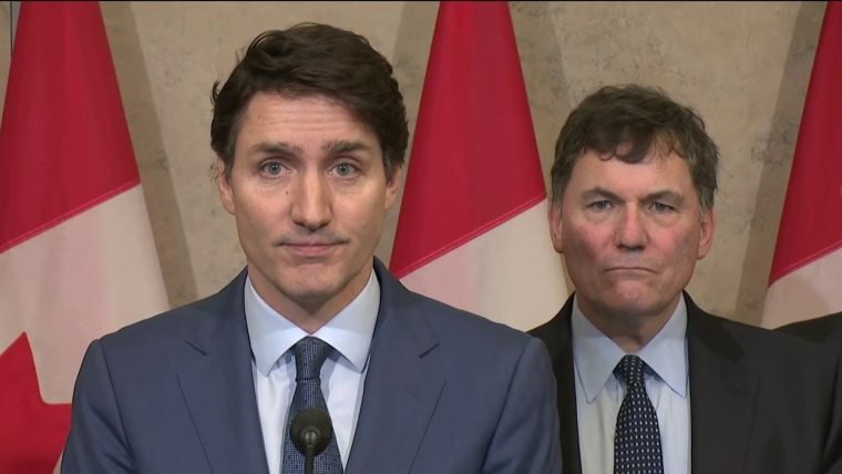 Following the U.S. tariffs going into effect, Canadian Prime Minister Justin Trudeau spoke about the reciprocal tariffs that Canada is imposing on the U.S. NBC News’ Brian Cheung reports on President Trump’s tariff plan and Trudeau’s response.March 4, 2025