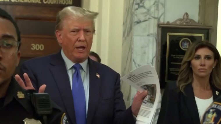 Former President Trump spoke to reporters at a New York City courthouse on the first day of his civil fraud trial and strongly criticized the judge overseeing the case. MSNBC's Lindsey Reiser reports on the arguments being made inside the courtroom.Oct. 2, 2023