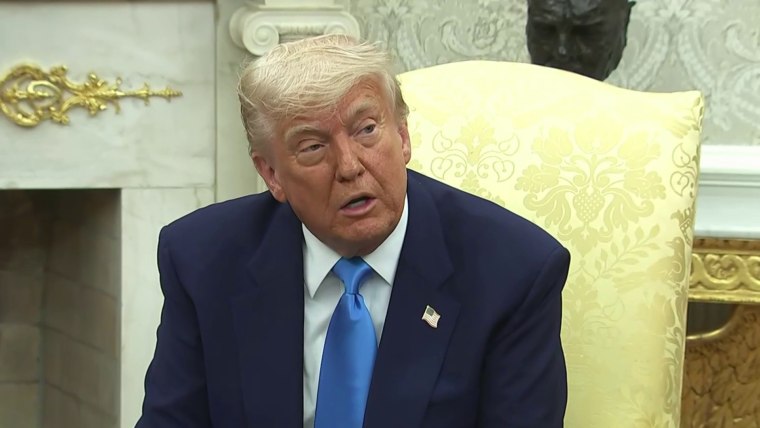 When asked by NBC News' Peter Alexander, President Trump said he would be discussing claims that white farmers in South Africa are facing "persecution" with President Cyril Ramaphosa.May 21, 2025