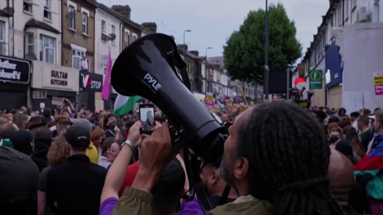 After false information on social media claimed a suspected murderer was an immigrant, riots broke out across the U.K. Now counter-protestors are taking to the streets in solidarity with refugees and migrants. NBC News' Josh Lederman has the latest.Aug. 8, 2024