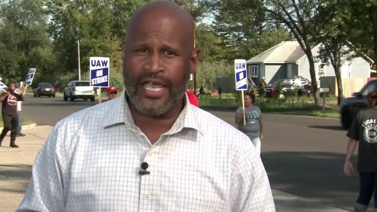 The General Motors strike is on its second day and about 50,000 employees are fighting for better wages, lower healthcare costs and job security for temporary workers. NBC News’ Ron Mott reports from a GM plant in Romulus, Michigan, with next steps.Sept. 17, 2019