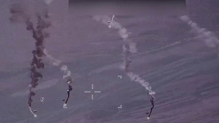 Video shows three U.S. MQ-9 drones being harassed by Russian fighter jets above Syria. The Russian jets dropped parachute flares and forced the U.S. aircraft to conduct evasive maneuvers. NBC’s Courtney Kube reports. July 6, 2023