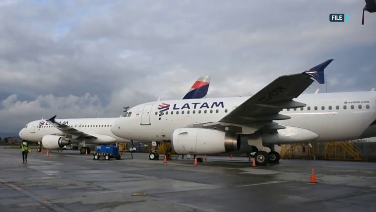 A Latam Airlines flight was forced to make an emergency landing due to severe weather on its second attempt from Chile to Paraguay. Video filmed inside the plane shows passengers experiencing extreme turbulence. NBC News’ Niala Charles has the details. Oct. 29, 2022