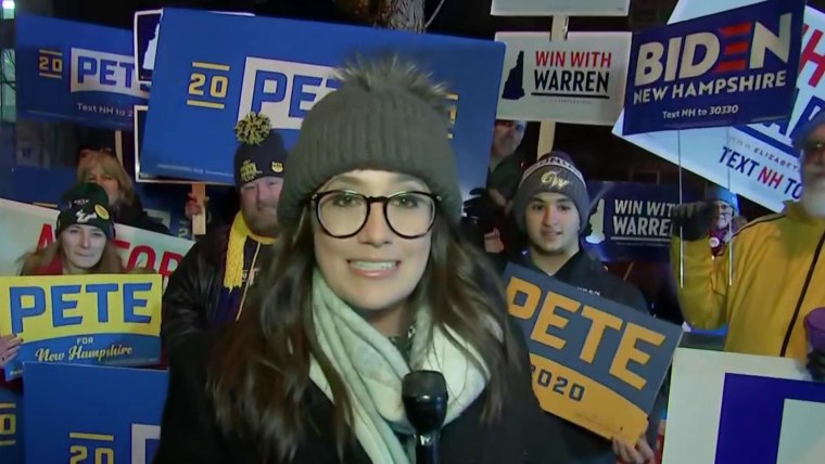 NBC News’ Savannah Sellers talks to voters in New Hampshire as they vote in the state primary.Feb. 11, 2020