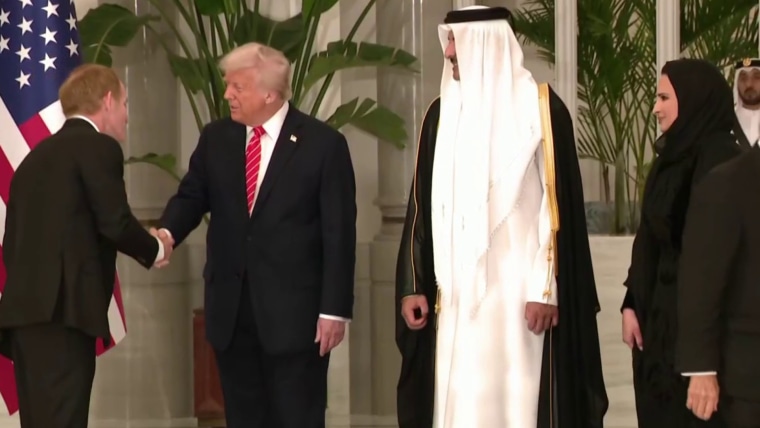 President Trump was welcomed in Qatar by the emir, as the two leaders exchanged praises and discussed a sweeping economic agreement. The White House claimed the president signed a $1.2 trillion trade deal with Qatar, though it did not provide documentation to support the figure. NBC News has not independently verified it.May 14, 2025