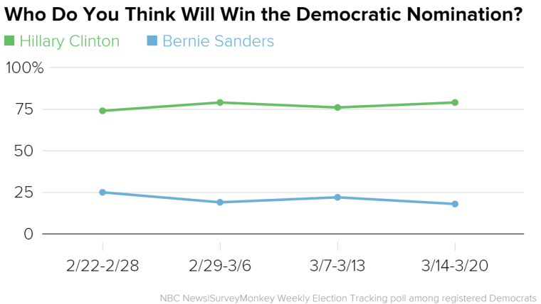 These results are according to the latest data from the NBC News|SurveyMonkey Weekly Election Tracking poll conducted online from March 14 through March 20 among a national sample of 13,389 adults, including 11,600 who say they are registered to vote.
