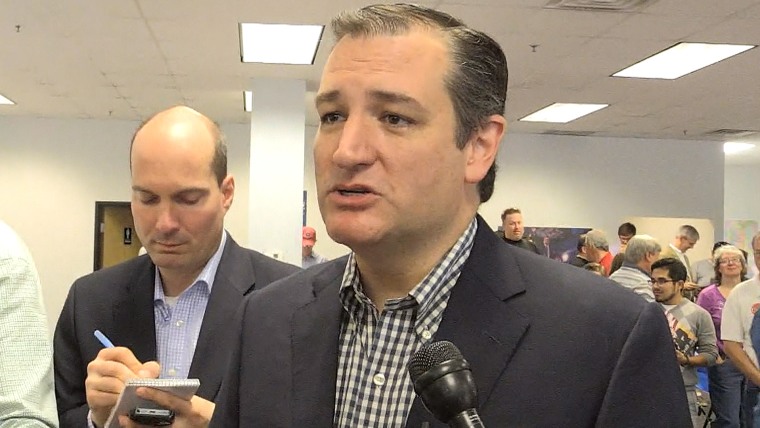 Ted Cruz couldn’t help but throw a couple barbs at his favorite Democratic target Saturday, a day before the Republican presidential candidate was to appear on NBC's "Meet the Press."