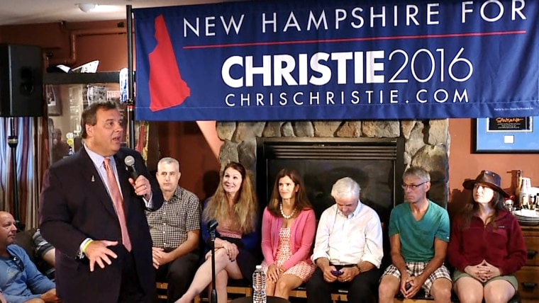 Republican presidential candidate and New Jersey Governor Chris Christie tells a group of people in New Hampshire Friday that he is ashamed of Sen. Co