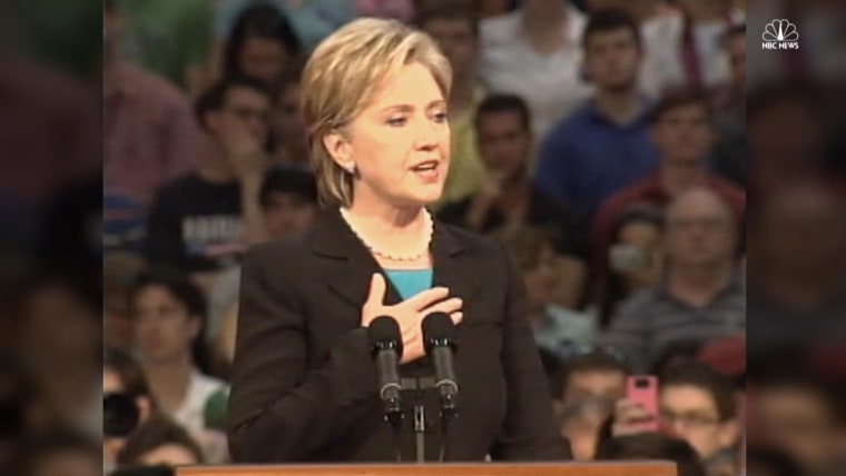 “It may be hard to see tonight, but we are all standing under a glass ceiling right now,” she said, echoing the key image of the concession speech from her first presidential bid — delivered exactly eight years ago. “Thanks to you, we’ve reached a milestone. For the first time in our nation’s history, a woman will be a major party’s nominee.”
