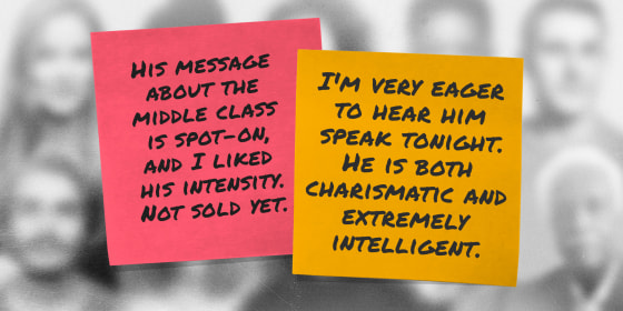 The viewers who took to NBC News' Election Confessions wrote close to 3,000 confessions, putting their inner voice on display. Some confessed that a candidate didn't quite meet their mark ("...Won’t vote for her, but might donate to keep her around to speak more,"), others confessed to giving up on their previous pick ("He was my front-runner. Now I am thinking that ship has sailed.").