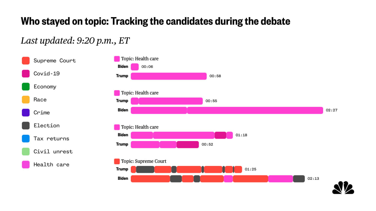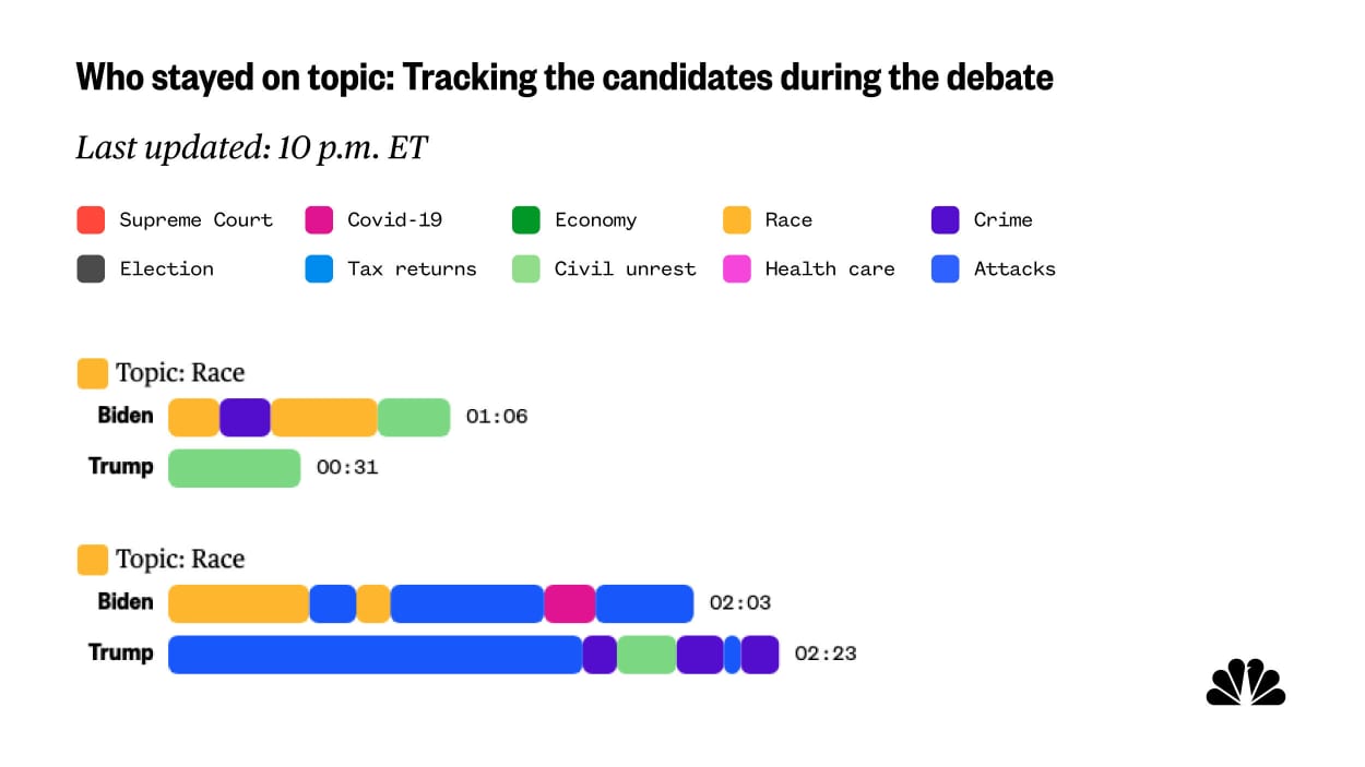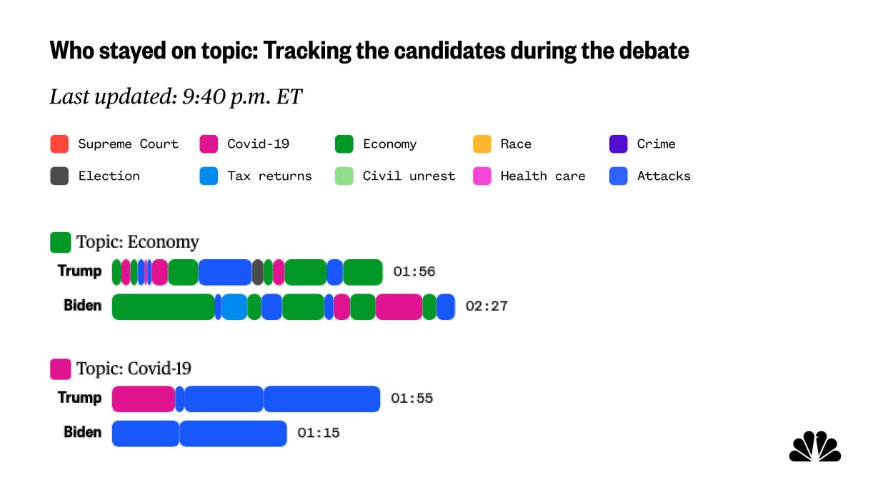 Another campaign aide was pleased that the Trump tax investigation story wasn't prominently featured. Some Trump allies are also playing up how Biden didn't name a law enforcement group that supports him, as well as his court-packing non-answer and his response on the coronavirus and the economy, and they're defending the president's behavior as simply a way of defending himself. And there's plenty of blame-the-ref talk, too, slamming Chris Wallace.