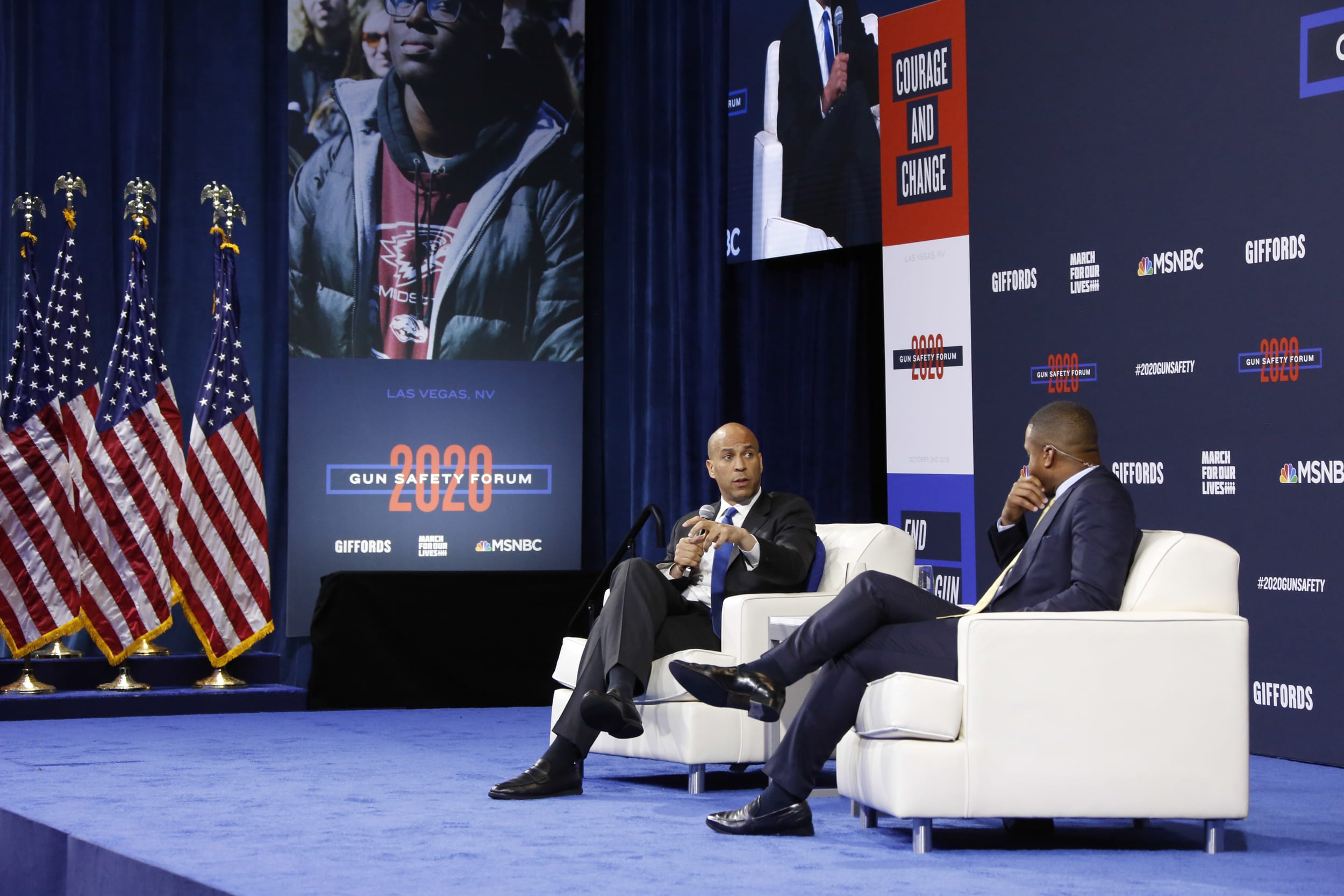 Cory Booker speaks to moderator Craig Melvin at the Gun Safety Forum in Las Vegas. Gabe Ginsberg / for MSNBC