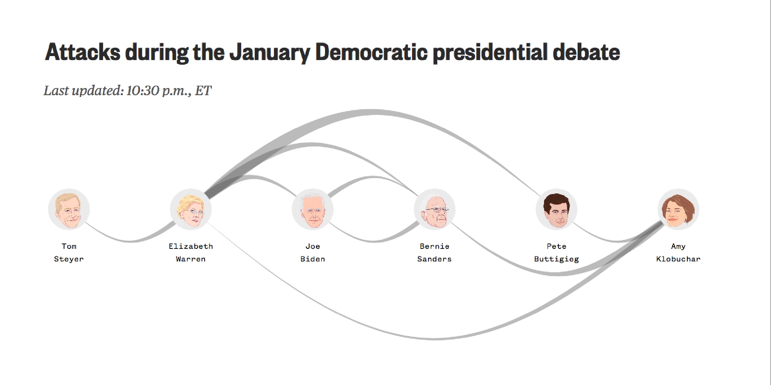 - With 19 attacks in 17 minutes of talking time Amy Klobuchar made the most attacks, averaging more than one attack every minute spoken.