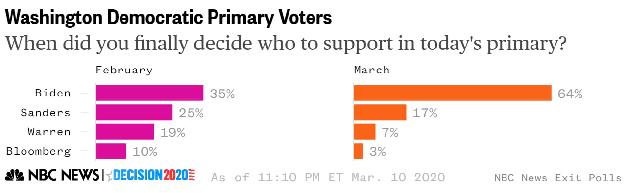 NBC News projects that former Vice President Joe Biden has won the Democratic primary in Washington state.