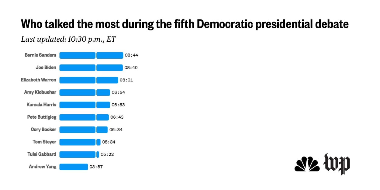 NBC News' live blog tracked the fifth Democratic primary debate of the 2020 presidential election cycle, co-hosted by MSNBC and The Washington Post.