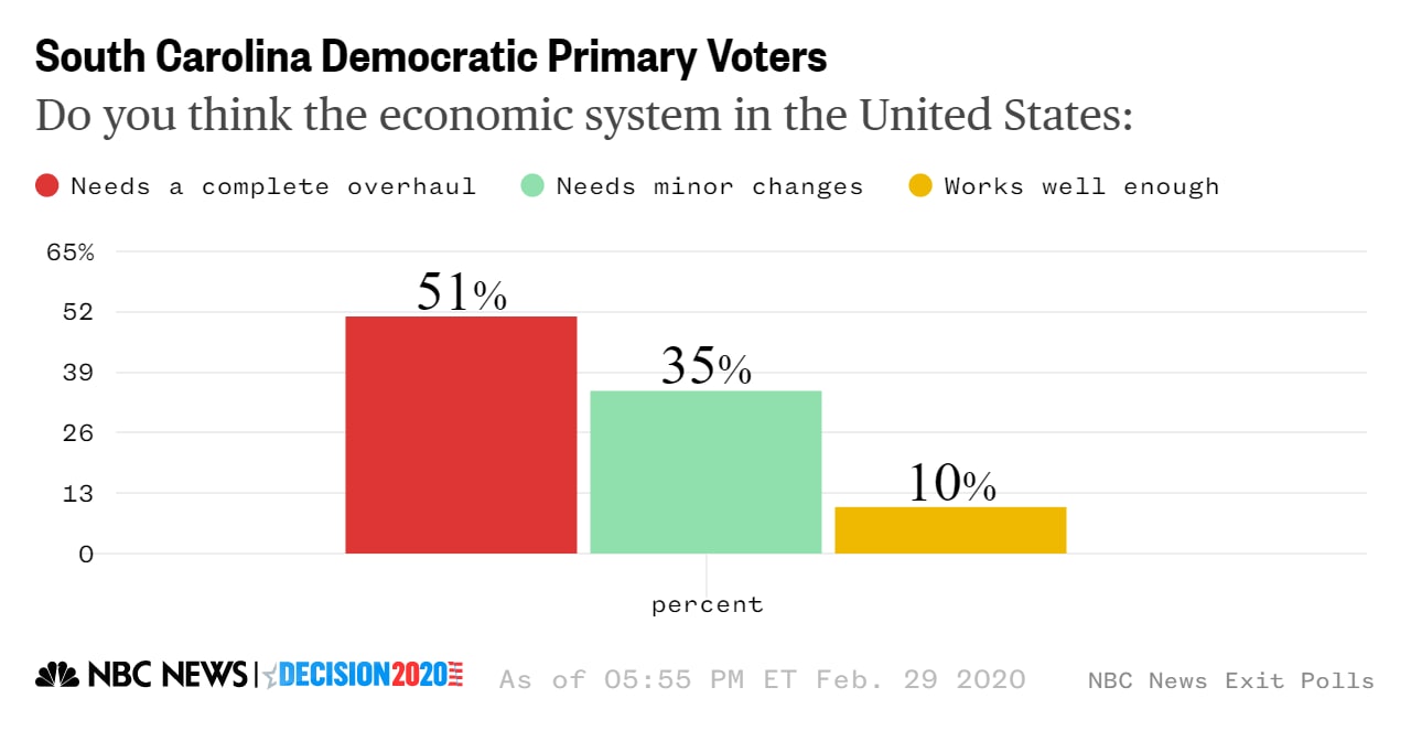 An idea whose appeal was once limited to the most liberal wing of the Democratic Party, “Medicare for All” is favored by a majority of voters in today’s presidential primary in South Carolina, which features the most moderate Democratic electorate so far in 2020. Support for the plan in the Southern state isn’t quite as high as among Democrats in Iowa, New Hampshire or Nevada, where an average of six in 10 voters expressed support for it.