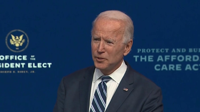 Biden was introduced by Vice President-elect Kamala Harris, who also stressed the importance of protecting and expanding Obamacare — and the scope of their election victory.