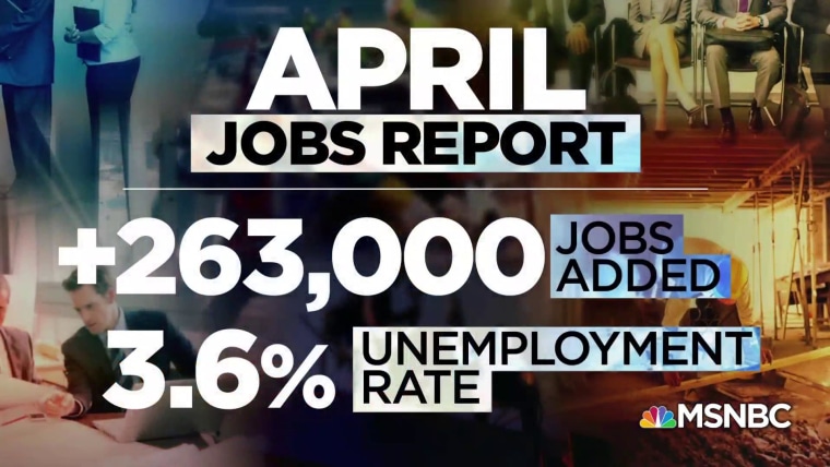 On Friday, the Labor Department announced that the economy added 263,000 jobs and hourly wages grew by two-tenths of a percent in April. The unemployment rate — 3.6 percent — is at its lowest level since December 1969, before the births of nine of the Democrats running for his job.
