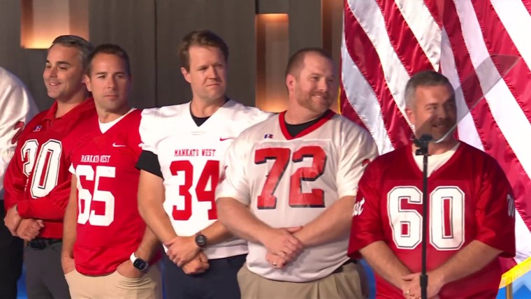 And then, at the convention itself in Chicago last month, Walz received his own pep rally when a parade of his former players took the stage wearing their old jerseys.