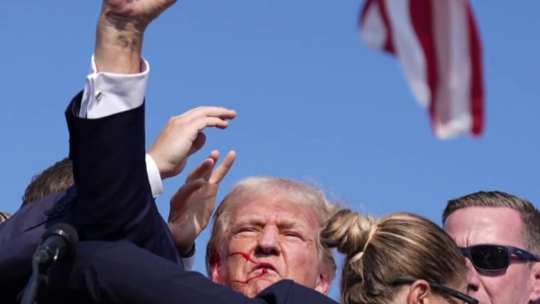 A Trump spokesperson did not reply to NBC News’ request for comment on whether the campaign views the attempted assassination as an asset on the campaign trail. But Trump used the already-iconic photo of him raising his fist in the air, while surrounded by his protective detail, in a fundraising appeal Sunday. A full-color American flag appears in the background of a black-and-white version of the photo used to pitch for donations. The words “NEVER SURRENDER” are emblazoned across the top of the image.