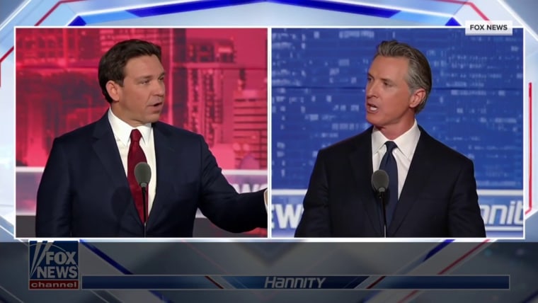 The showdown — dubbed "The Great Red vs. Blue State Debate" by Fox News — featured spirited exchanges on tax, education, abortion, energy, immigration, Covid and crime policy, with both DeSantis and Newsom warning that their opponent's models would be disastrous for the country if they were exported nationwide.