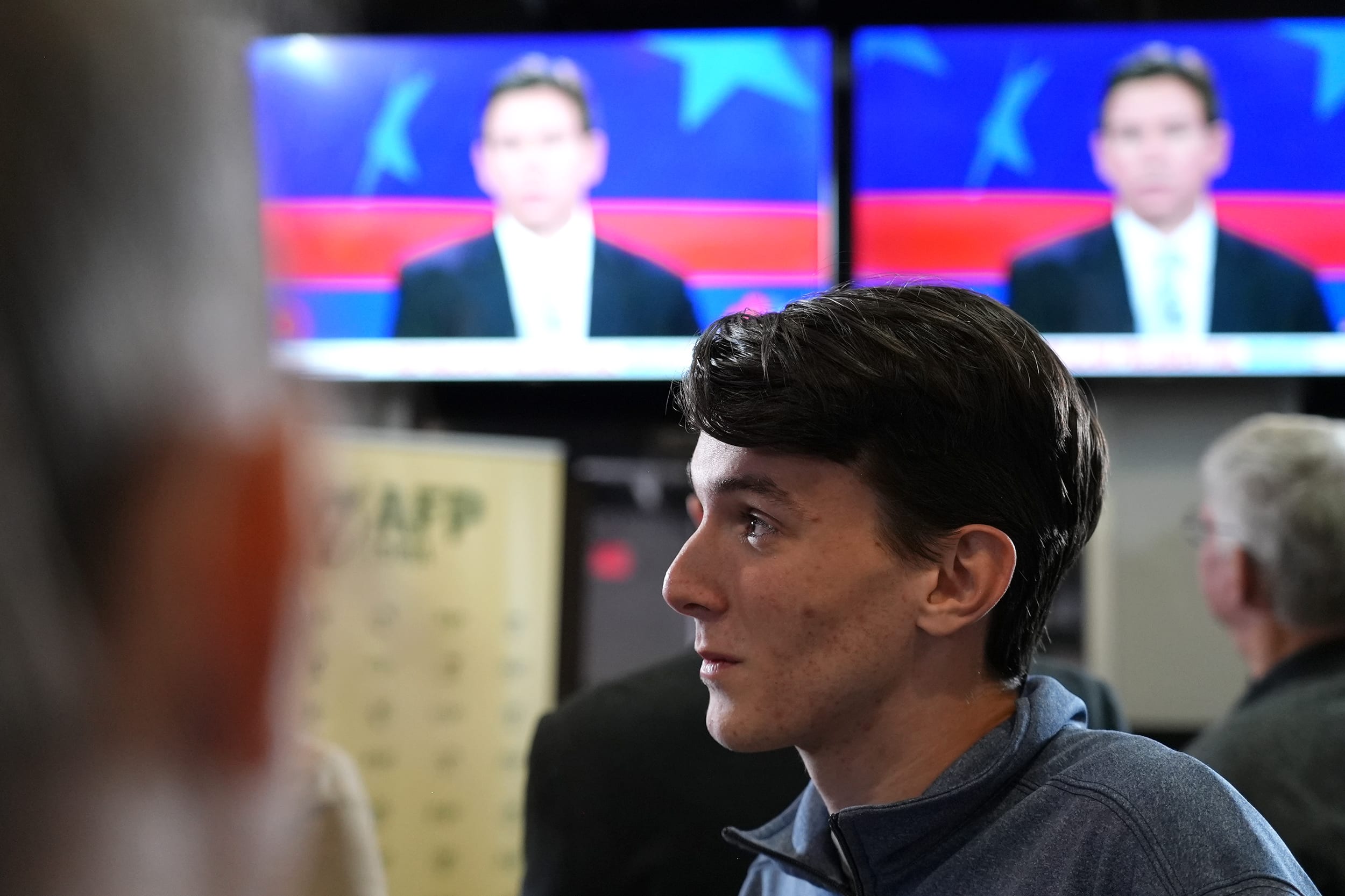 Kyle Claire, 20, is a college Young Republican from the University of Iowa. Claire is a DeSantis fan who was jazzed about Iowa Gov. Kim Reynolds’ recent endorsement of the Florida governor. He’s still considering Haley though, and feels like DeSantis waffled on his stance on Ukraine on the debate stage tonight.