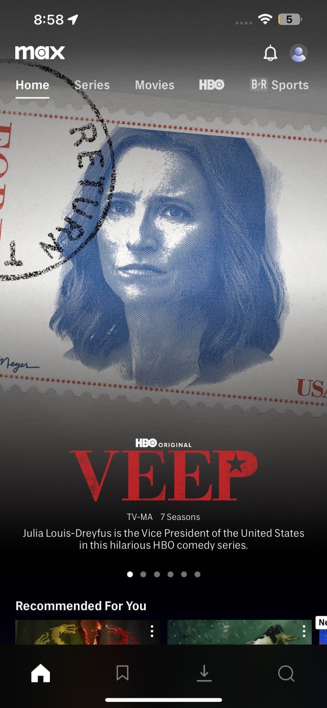 The HBO streaming platform Max is now advertising the comedy series "Veep" on its home screen.