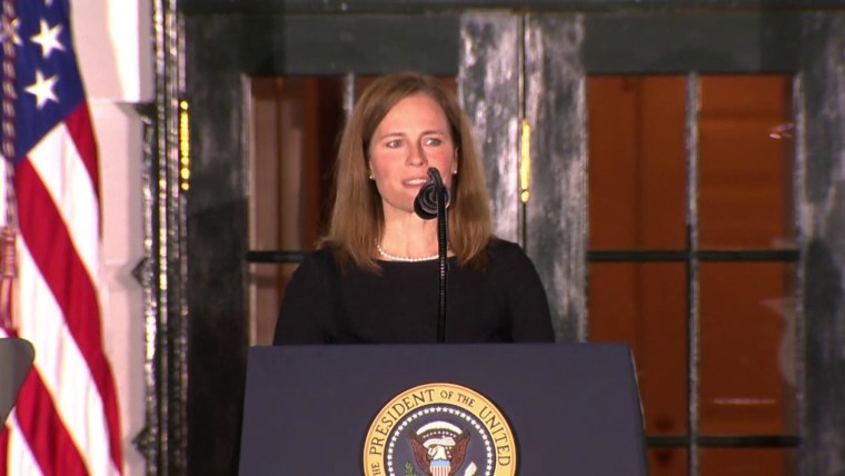 In her brief speech, Barrett promised to rule from the bench with strict independence.