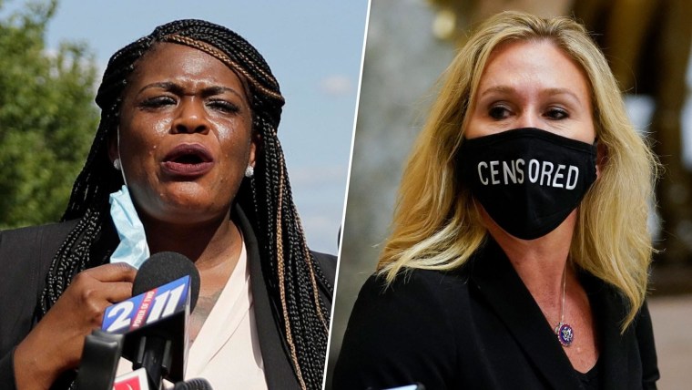 WASHINGTON — Rep. Cori Bush, D-Mo., said Friday that she’s moving her congressional office away from Rep. Marjorie Taylor Greene's after the Georgia Republican and her staff “berated” her in a hallway.