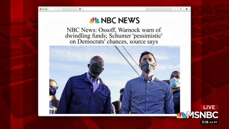 "I am calling on Sen. Perdue to reverse his opposition to $2,000 relief checks. Look, President-elect Biden, President Trump and Democrats all support this policy to get money into the pockets of hardworking Americans who are in dire straights right now, and Sen. Perdue needs to come out tonight and commit to voting on the floor of the Senate for $2,000 relief checks."