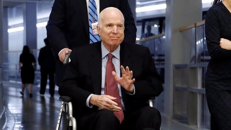 Earlier Sunday, after speaking with McCain's wife, Cindy, President Donald Trump told reporters that McCain was having a "very tough time." Trump added that the senator would return to Congress if he's needed for a vote on the tax bill.