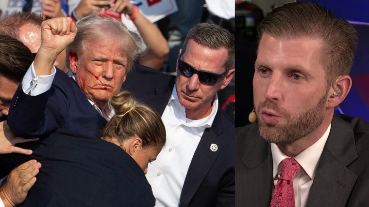 "We almost witnessed the assassination of a former president and probably a future president on live TV," Eric Trump told MSNBC's Katy Tur on Tuesday. "And, you know, not only would it be devastating to me as a son — I mean, there’s no one in the world I love more — but think about how that’s devastating to a nation."