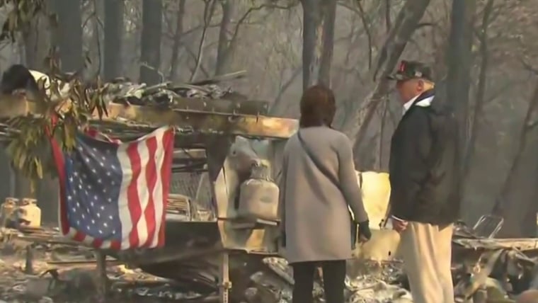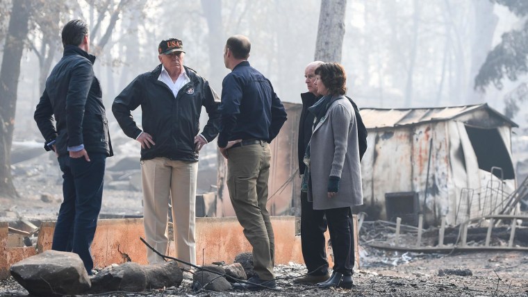 The president later flew to the scene of the Woolsey Fire, which also broke out Nov. 8 and has burned more than 98,000 acres in Los Angeles and Ventura counties. It's destroyed at least 836 homes and other structures, according to the California Department of Forestry and Fire Protection, also known as Cal Fire.
