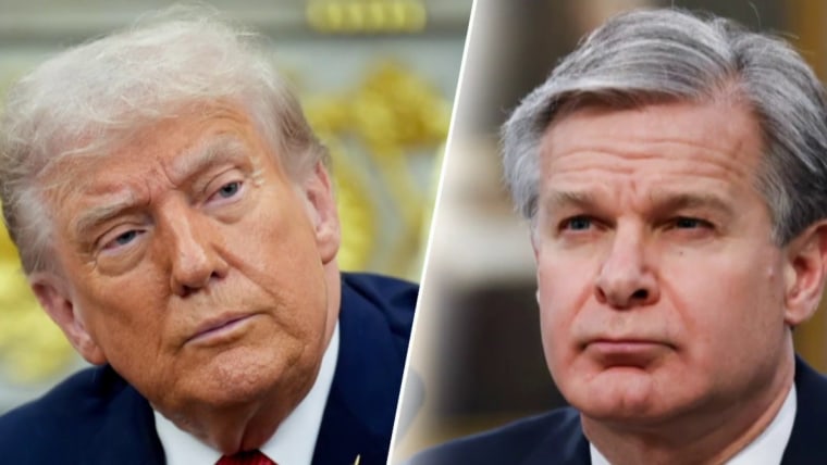 President Donald Trump, in an exclusive interview Sunday with NBC News, accused former FBI Director Christopher Wray of “inappropriate” behavior during his tenure and said he “would think” the Justice Department is investigating him.