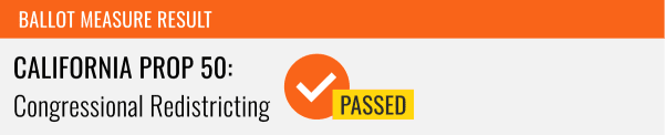 - CALIFORNIA REDISTRICTING: Voters approved a ballot measure to redraw the congressional map to favor Democrats, NBC News projects. The referendum, known as Prop 50, came in response to similar efforts in Republican-led states.