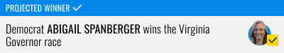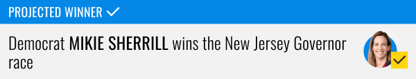 - GOVERNOR'S RACES: NBC News projected that Democrat Abigail Spanberger has defeated Republican Winsome Earle-Sears to become Virginia's first female governor. In New Jersey, Democratic Rep. Mikie Sherrill beat Trump-backed Jack Ciattarelli in the governor's election, NBC News projects.