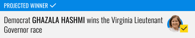 Virginia state Sen. Ghazala Hashmi became the first Muslim American woman elected to statewide office in the U.S. with her victory in the state’s lieutenant governor’s race, NBC News projects.