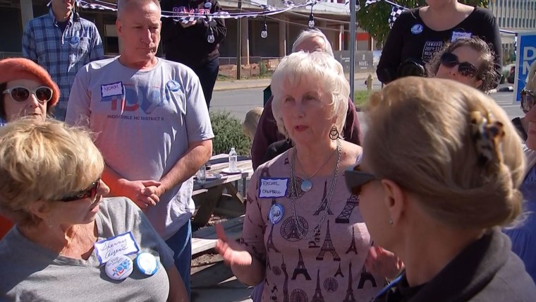 That group, Indivisible NC9, has gotten the last laugh. It now has more than 1,200 members working to elect Democrats. Carol Johnstone and Caroline Bouchard are among those who are part of this new narrative. They just spent a sunny, Sunday afternoon going door-to-door for Democrat Dan McCready, who is facing off against Republican Mark Harris.