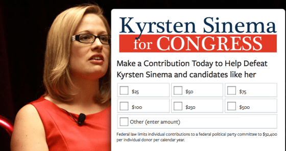Republicans are defending a series of websites they established that appear to support Democratic candidates for Congress, but instead direct contributions to the GOP.The National Republican Congressional Committee (NRCC) said its websites were not confusing, and accused Democrats of crying foul because their candidates were struggling.The sites, like this one for Arizona Democratic Rep. Kyrsten Sinema, feature a "Kyrsten Sinema for Congress" banner, and a picture of the first-term congresswoman from a competitive Maricopa County district.The sites also display a clear, but smaller secondary banner, urging contributions to "help defeat" (in this case) Sinema. At the bottom of the page, it features an NRCC disclaimer."Democrats are clearly pitching stories on these effective websites because they are worried about voters learning the truth about their candidates' disastrous records," said NRCC spokeswoman Andrea Bozek. "Anyone who reads the website understand these are negative attacks. Also as required our disclaimer is at the bottom."Asked whether the website was potentially confusing to a potential donor seeking to support a Democratic candidate for Congress, Bozek said: "I think we give voters a little more credit than that."The issue was highlighted by Democratic groups and reports in both National Journal and the Tampa Bay Times. The latter's report focused on an individual donor who had sought to give money to Florida Democrat Alex Sink's campaign ahead of a special election in the Tampa Bay area last month. The report had indicated that the NRCC had declined to return a donor's errant contribution.Bozek said the report was published, though, before they heard from the donor featured in the piece. His contribution was refunded, and Bozek said the NRCC would refund anyone's contribution in error."Anyone who asks for a contribution or who was confused, we'd be happy to refund," she said.