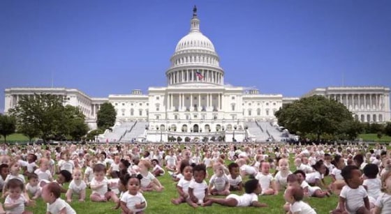 About 2:48 into what is otherwise a serious ad about the former Reebok and Dollar General CEO and cousin of former Gov. Sonny Perdue (R), actual, whining babies with his opponents’ names on their onesies appear. They are sprinkled throughout the rest of the video and even used to expand the metaphor to all of Congress, showing babies sprawled on lawn in front of the Capitol.