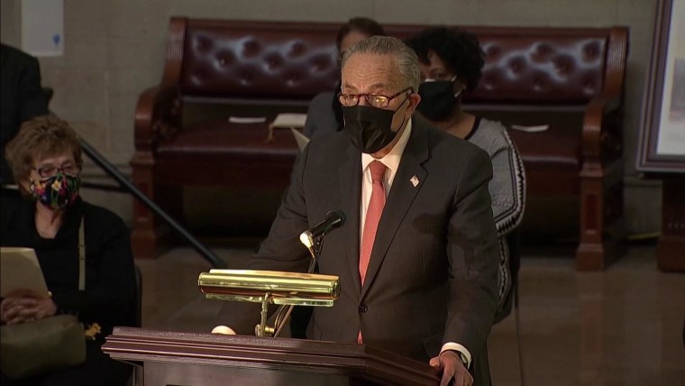 The assault on the Capitol, Schumer said, "has left deep scars here in this building, among his friends and his colleagues, as have the tragic deaths of two of Brian's fellow officers in the days since his passing."