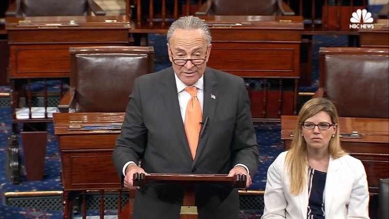 "President Trump, I challenge you to invite us, all 100 of us, Republican and Democrat, to Blair House to discuss a new bipartisan way forward on health care in front of all the American people," Schumer said in a speech on the Senate floor.