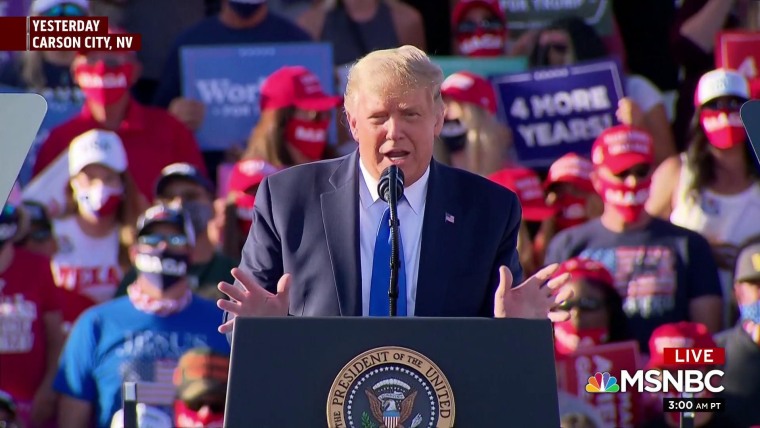 “Keep your eyes open and report them to law enforcement at the strongest level. … We have law enforcement watching. We have U.S. attorneys, sheriffs, everybody is watching. Postal inspectors hopefully are watching,” he continued, insisting his campaign has never looked better. “We’re going to win. This is the highest point we’ve ever been,” he said, adding, “My whole life has been about winning.”