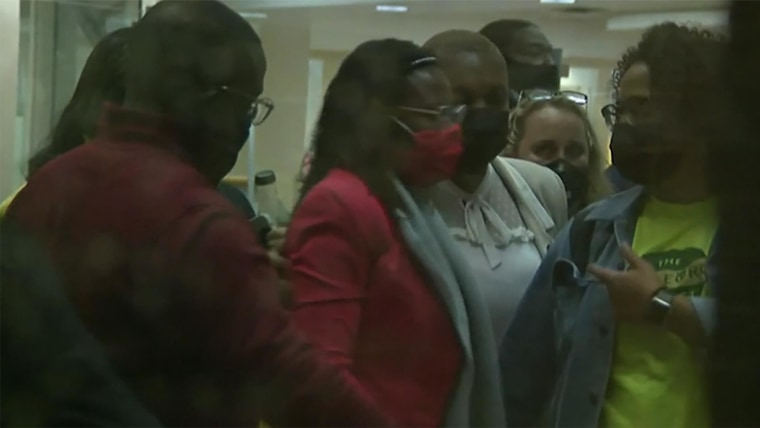 She was taken to the Fulton County Jail. Sen. Raphael Warnock, D-Ga., arrived there a short time later to support the state lawmaker and was greeted by a small cheering crowd.