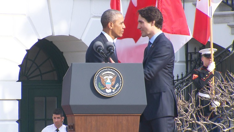 Obama and Trudeau held a news conference after a meeting in the Oval Office that followed a welcoming ceremony where the White House rolled out the red carpet Thursday for the first official visit in nearly two decades by a Canadian prime minister, a charismatic and youthful liberal leader intent on maintaining tight ties with the United States.