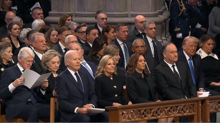 In a rare show of unity in these tumultuous times, every living American president filed into pews together Thursday to honor one of their own at the funeral for President Jimmy Carter at Washington National Cathedral on Thursday.