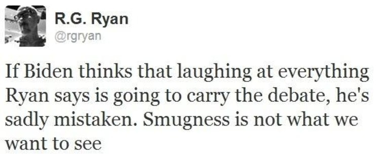 But pro-Ryan commentary was very different. Even people who thought he did better were likely to characterize their opinions in reaction to Biden, rather than highlight what impressed them about Ryan — much of whose favorable sentiment was expressed as annoyance at the vice president.