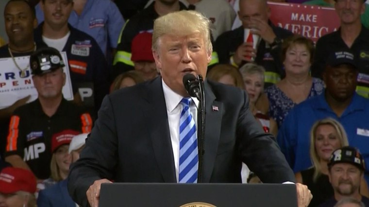 At a nearly 90 minute campaign speech Tuesday evening, Trump touched on topics ranging from the NFL to the EU — but avoided addressing the Manafort or Cohen developments directly.