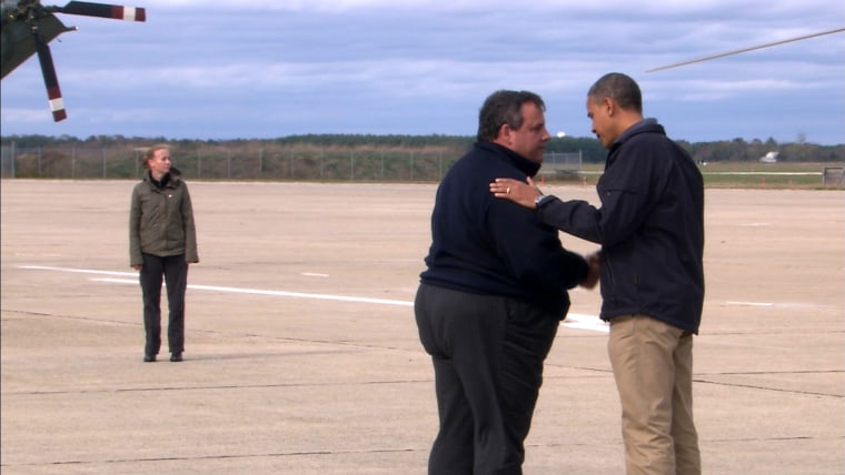 On Oct. 29, 2012, just eight days ahead of the election, Hurricane Sandy made landfall in the United States. Both President Barack Obama and Republican presidential nominee Mitt Romney halted their campaigns to focus on the recovery efforts. One of the lasting political images from the storm was New Jersey Gov. Chris Christie, the prime time speaker at the 2012 GOP convention, embracing Obama and praising his leadership in response to the storm.