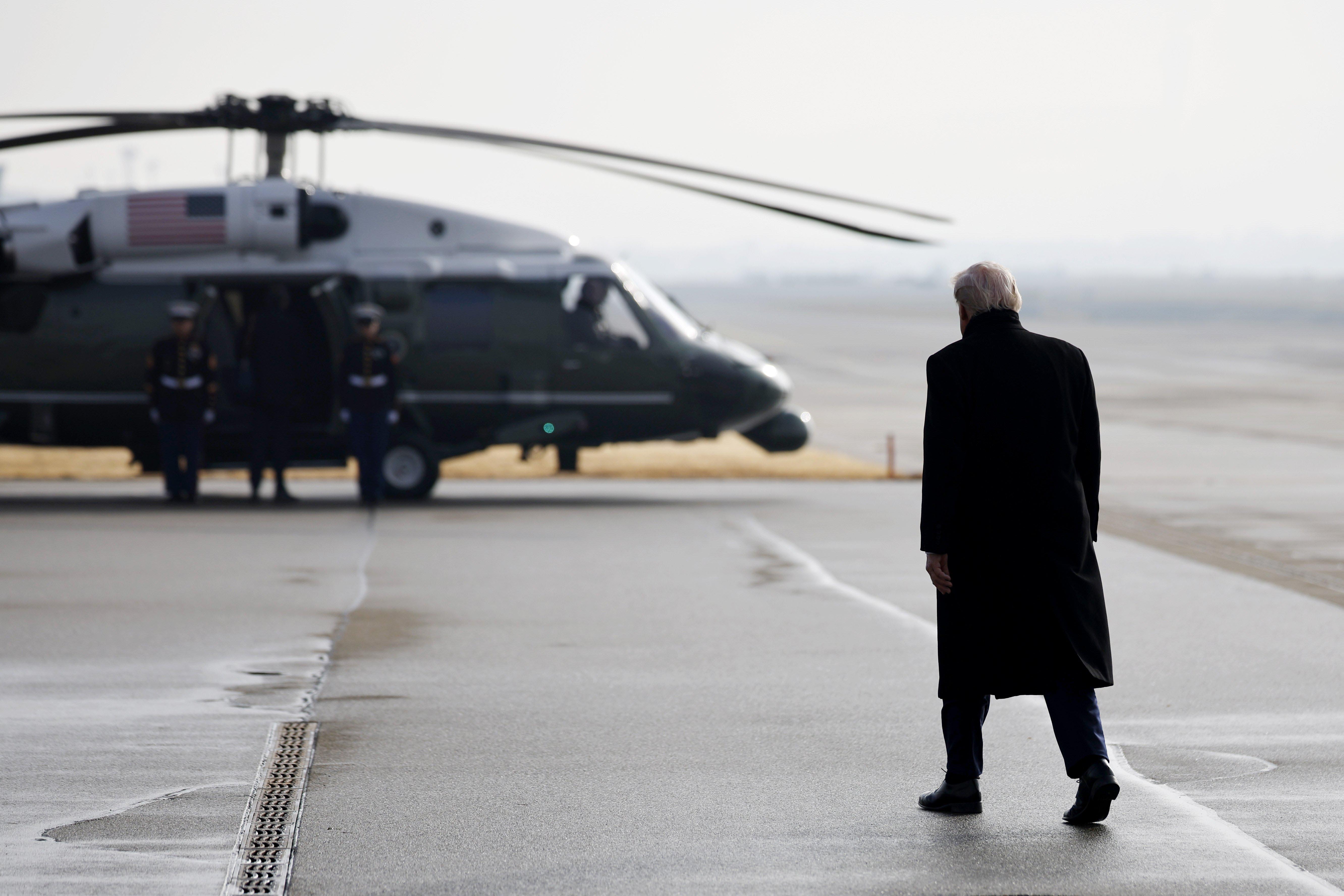 President Trump walks toward Marine One to transfer to Davos after arriving in Zurich today. Evan Vucci / Associated Press